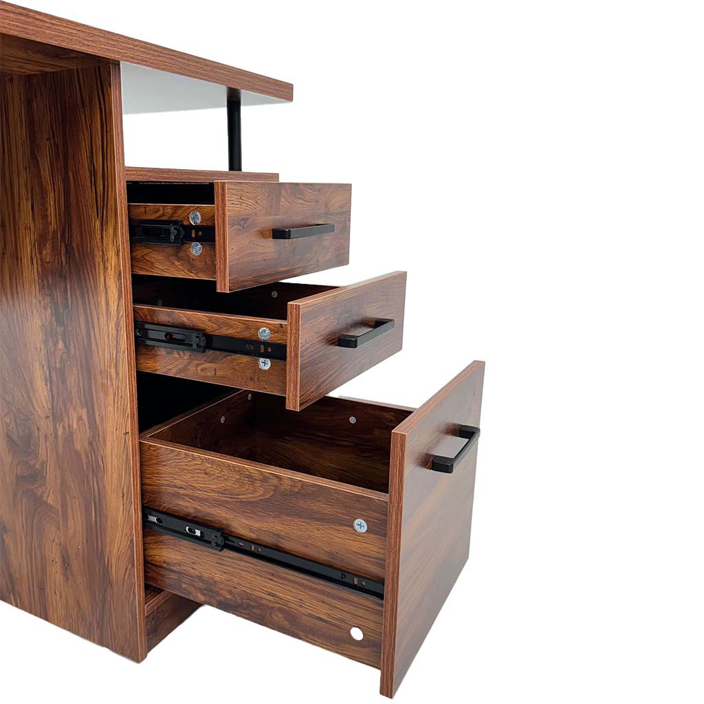 - Cuenta con 3 gavetas y 2 estantes al lado.