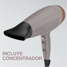 La secadora Remington D26A-110F (BD00402) es un secador de 1900W con tecnología de Colágeno y Biotina, que incluye una rejilla de cerámica con microacondicionador enriquecido, acondicionamiento iónico de turmalina para reducir el frizz y estática, y ofrece 3 temperaturas, 2 velocidades, función de aire frío y accesorios como concentrador, dejando el cabello suave, brillante y protegido.