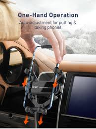 PORTA CELULAR LDNIO MG03 (300284) es un soporte para auto que se engancha en la rejilla de ventilación y usa un mecanismo de gravedad para sujetar el teléfono automáticamente, ofreciendo rotación de 360° y un diseño de alta calidad en ABS para compatibilidad universal y un uso manos libres seguro.