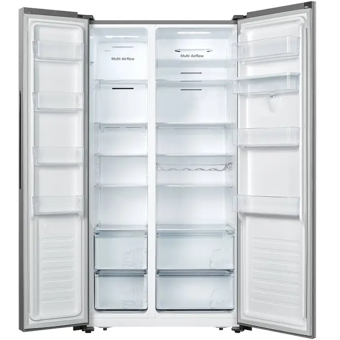 - Tipo: Side by Side (dos puertas verticales, una para refrigerador y otra para congelador).